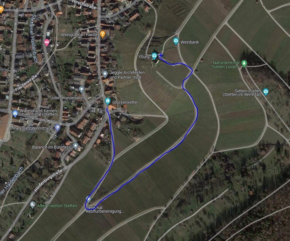 Wir empfehlen am Parkplatz Weinstraße in der Nähe der Glockenkelter zu parken und über die Weinberge zur Y-Burg zu gehen.