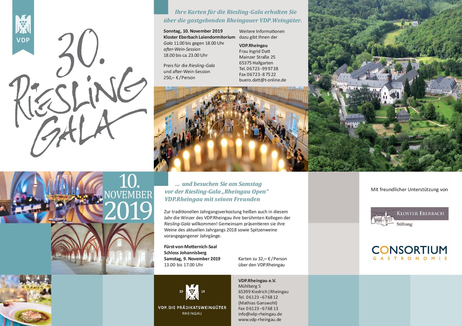 Erfahren Sie mehr... und besuchen Sie am Samstag vor der Riesling-Gala „Rheingau Open“ VDP.Rheingau mit seinen Freunden Zur traditionellen Jahrgangsverkostung heißen auch in diesem Jahr die Winzer des VDP.Rheingau ihre berühmten Kollegen der Riesling-Gala willkommen! Gemeinsam präsentieren sie ihre Weine des aktuellen Jahrgangs 2018 sowie Spitzenweine vorangegangener Jahrgänge. Fürst-von-Metternich-Saal Schloss Johannisberg Samstag, 9. November 2019 13.00 bis [...]